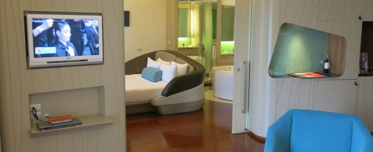 The basic standard room is excellent, but for those looking for more space, upgrade to the Club Deluxe (32 square meters) or Studio Suite (64 square meters). The room had a desk area with power outlets compatible with both Asia and US plugs. There was also a relaxing couch area with lots of pillows to chill out for reading on those days the monsoon rains came in. The bathroom wasn’t huge, but it was clean and modern.